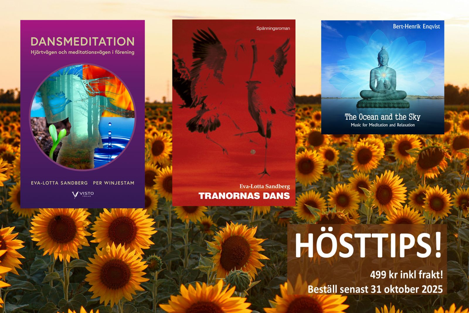 Passa på att beställa fint erbjudande av böcker och musik att inspireras av, 2 böcker och 1 CD-skiva med meditationsmusik, från Dansmeditations kulturproduktion till priset av 499 kr. Ordinarie pris inklusive frakt är 691 kr. Erbjudandet gäller inom Sverige. Beställ senast den 31 oktober 2025.